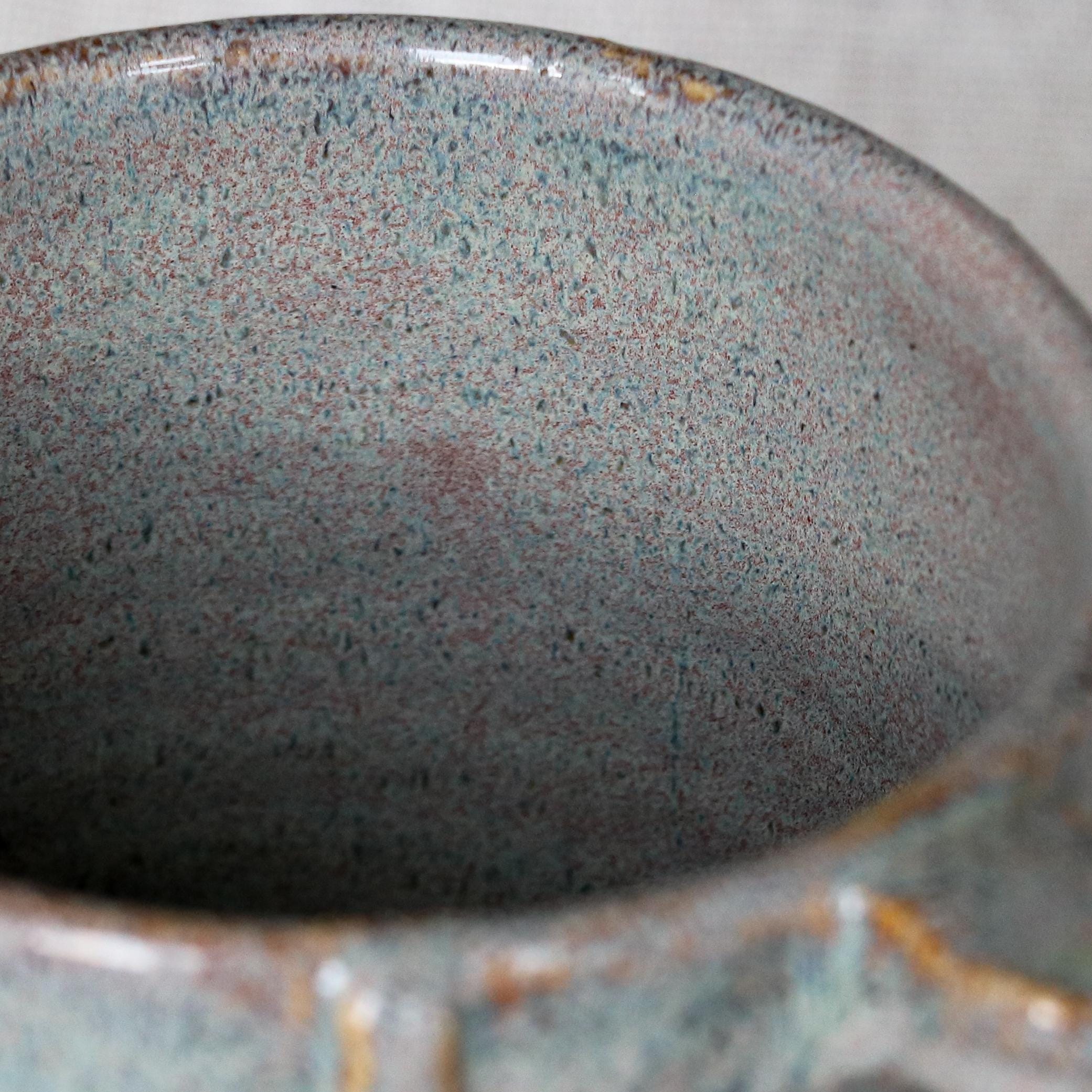 All the ceramics in this shop are made by us in house in our garden studio. Our pieces are all hand thrown using a white stoneware clay, then bisque fired, glazed, then re-fired to vitrify.