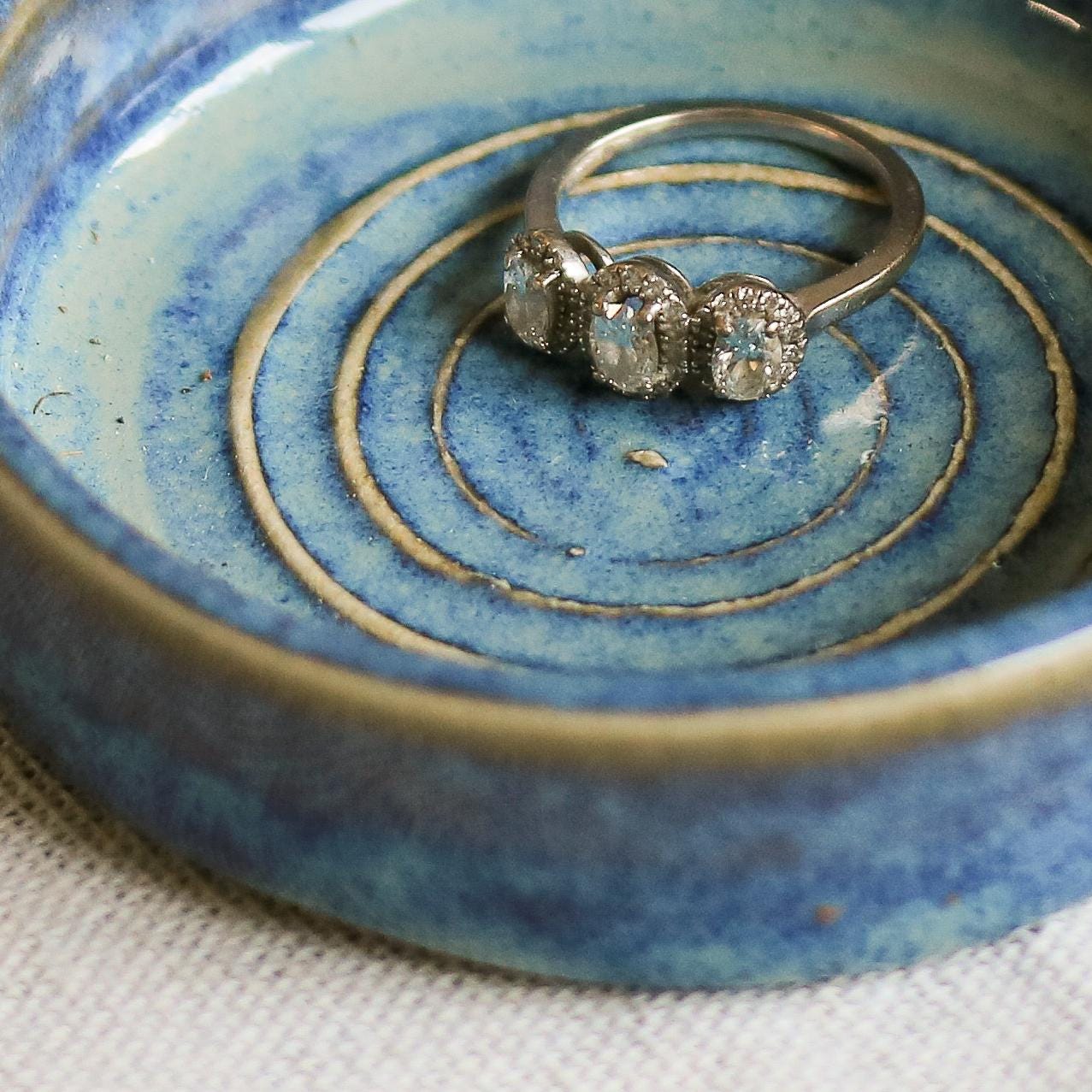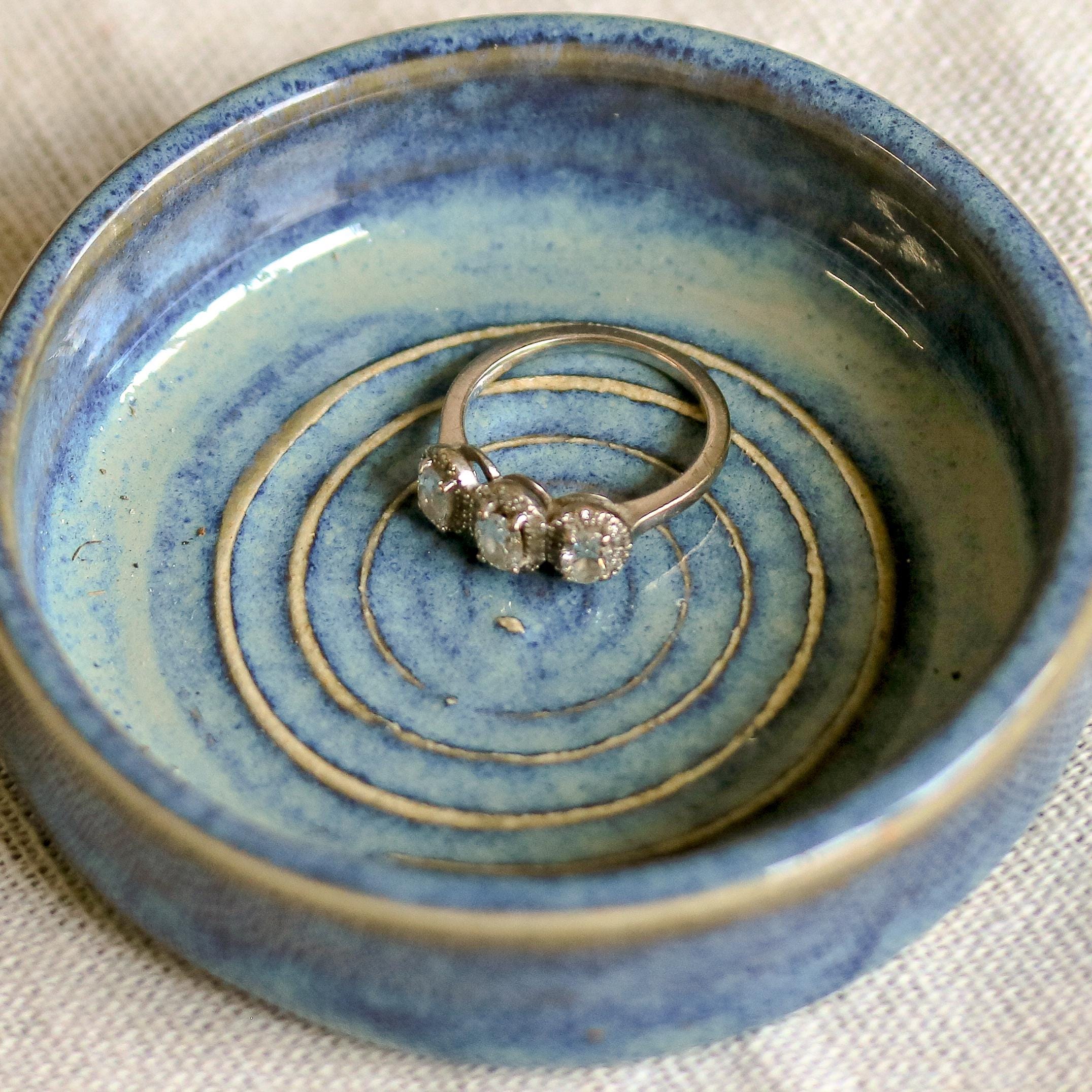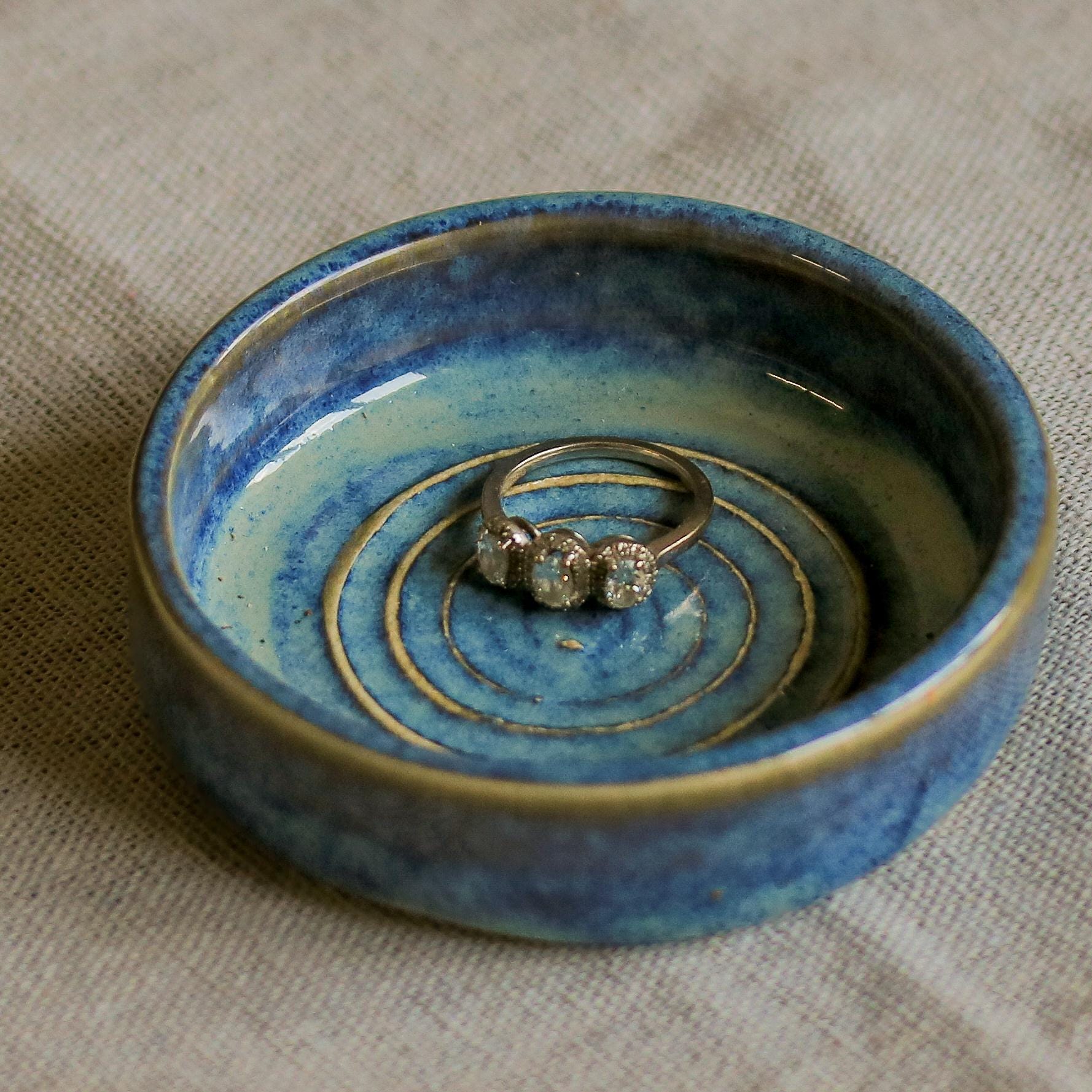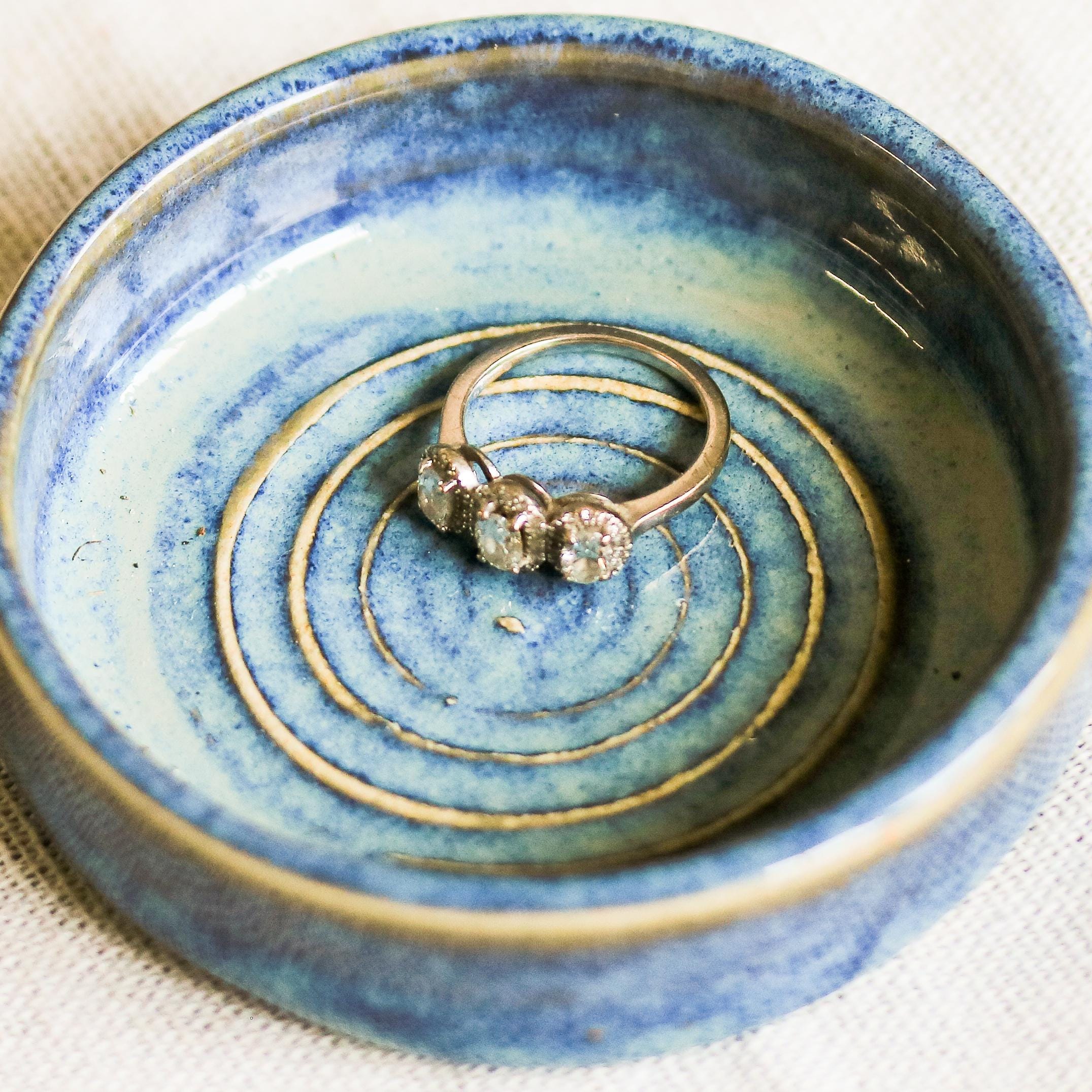 A hand thrown ceramic tea bag caddy/teaspoon holder or trinket bowl. Made by us in our garden studio in Hampshire, just inside the beautiful South Downs National Park.
