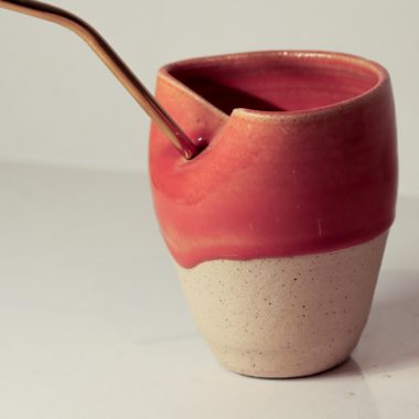Hand thrown Ceramic Burnt orange Glaze Sippy Cup with metal straw